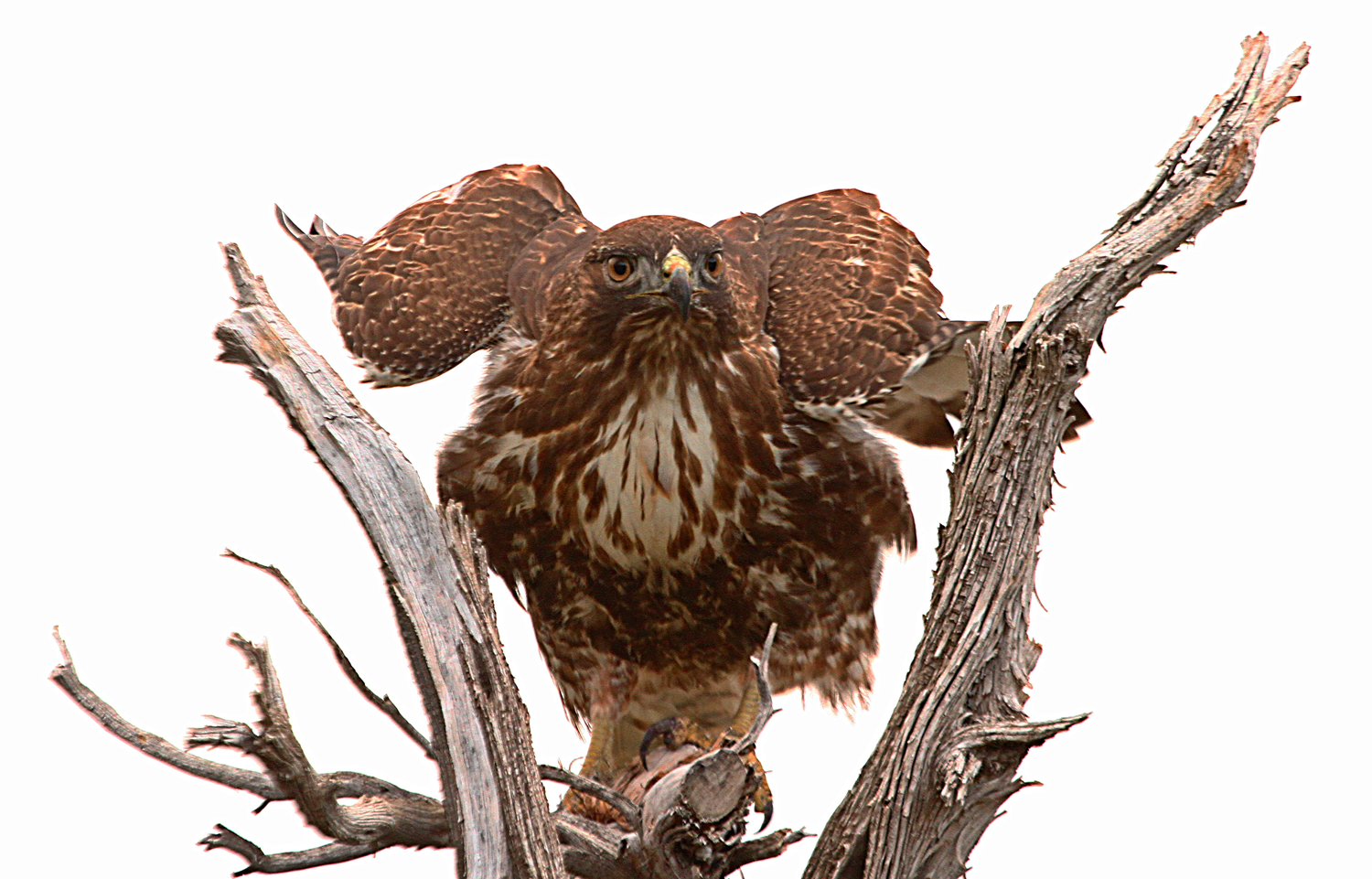 Saw this awesome red tailed hawk perched on a dead juniper branch watching the ducks on the pond close to my house. She was so accommodating, set there a long time, even flew down to check out something in the long grass next to the pond and then flew right back up into the juniper. Gotta love raptors.