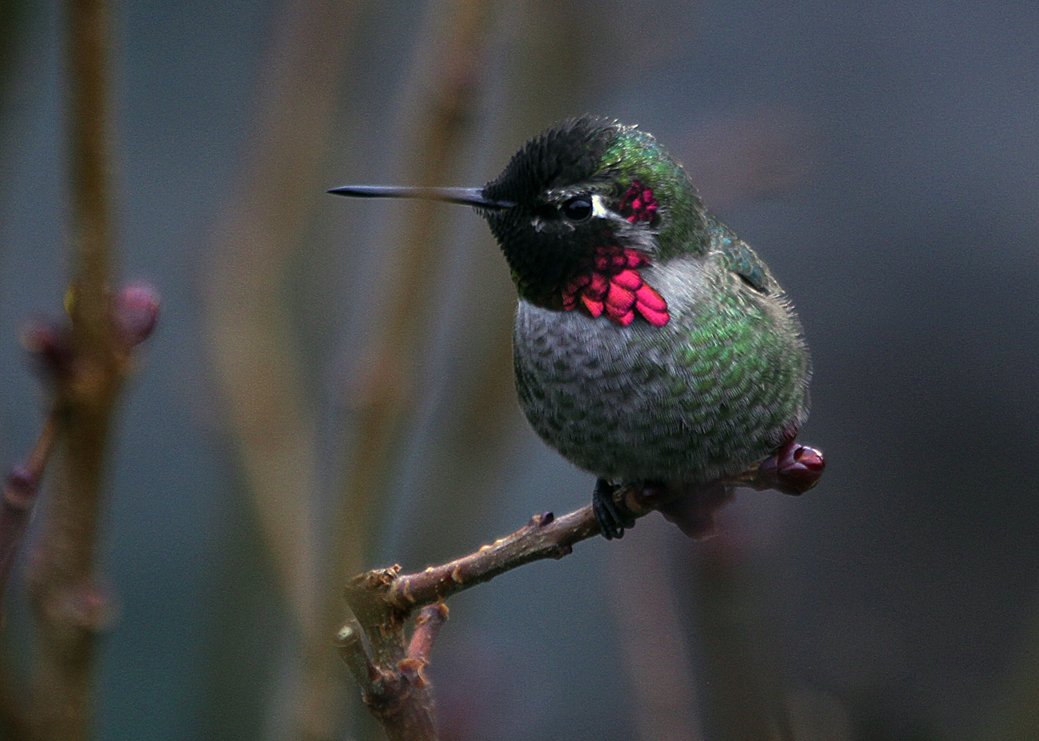 I've been waiting and watching for the opportunity to try to capture the iridescence on this male Anna's hummingbird. He showed up here a few weeks ago and is one of the brightest I've seen. Got a couple decent shots.