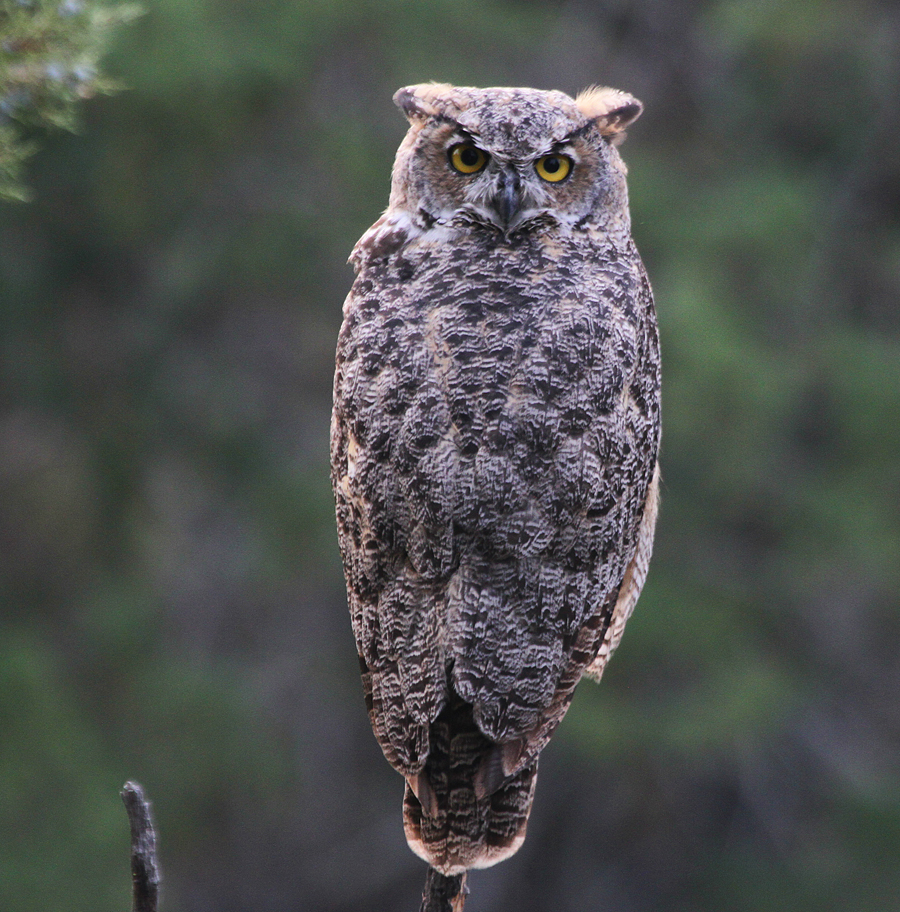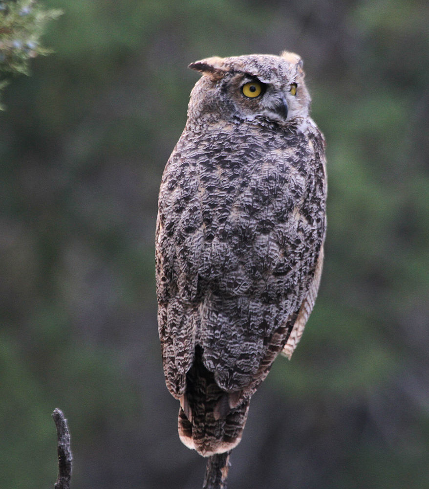 I don’t see the horned owl out in the open much. He is usually buried in the trees and when he sees me gets nervous and takes off. I went out a couple times this summer looking for them and all I got was some hooting. I am in Oregon now Looking for birds. I see them but don’t seem to be able to get a decent picture. I will keep trying. I think I will go to Cannon Beach and look for a tufted puffin. I just read the big year. Good book.