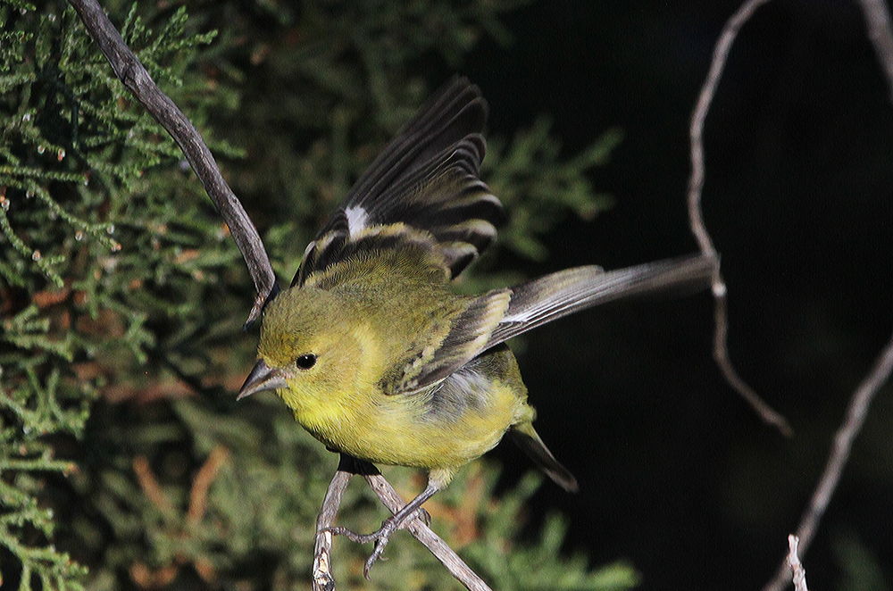 Our birds seem to come in waves. Lately we have a flush of house finches, some are really red (one even had me thinking it was a drab western tanager until I got a closer look). And now we have a bunch of lesser goldfinches. Their colors fade as the breeding cycle ends but they're still pretty little birds.